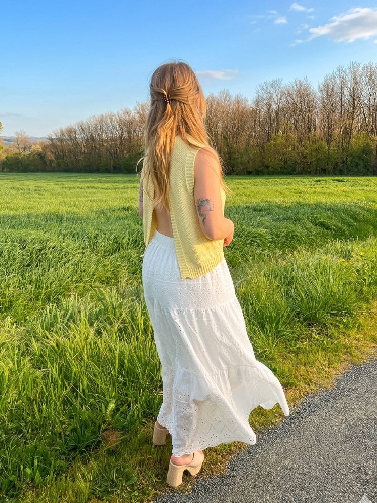 S'il y a bien une pièce dont je ne peux plus me passer cette saison, c'est elle : la jupe longue blanche. Mais attention, j'ai décidé de la sortir de son look trop 'sage' pour lui donner un vrai coup de peps !