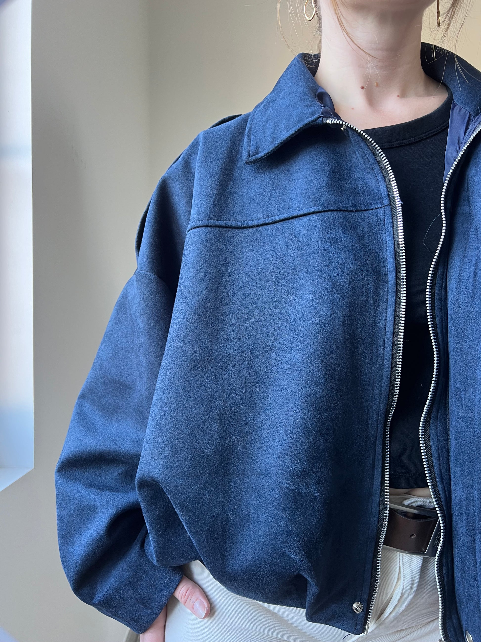 Alliant modernité et confort, cette veste en suédine séduit par sa texture douce et son tombé élégant.