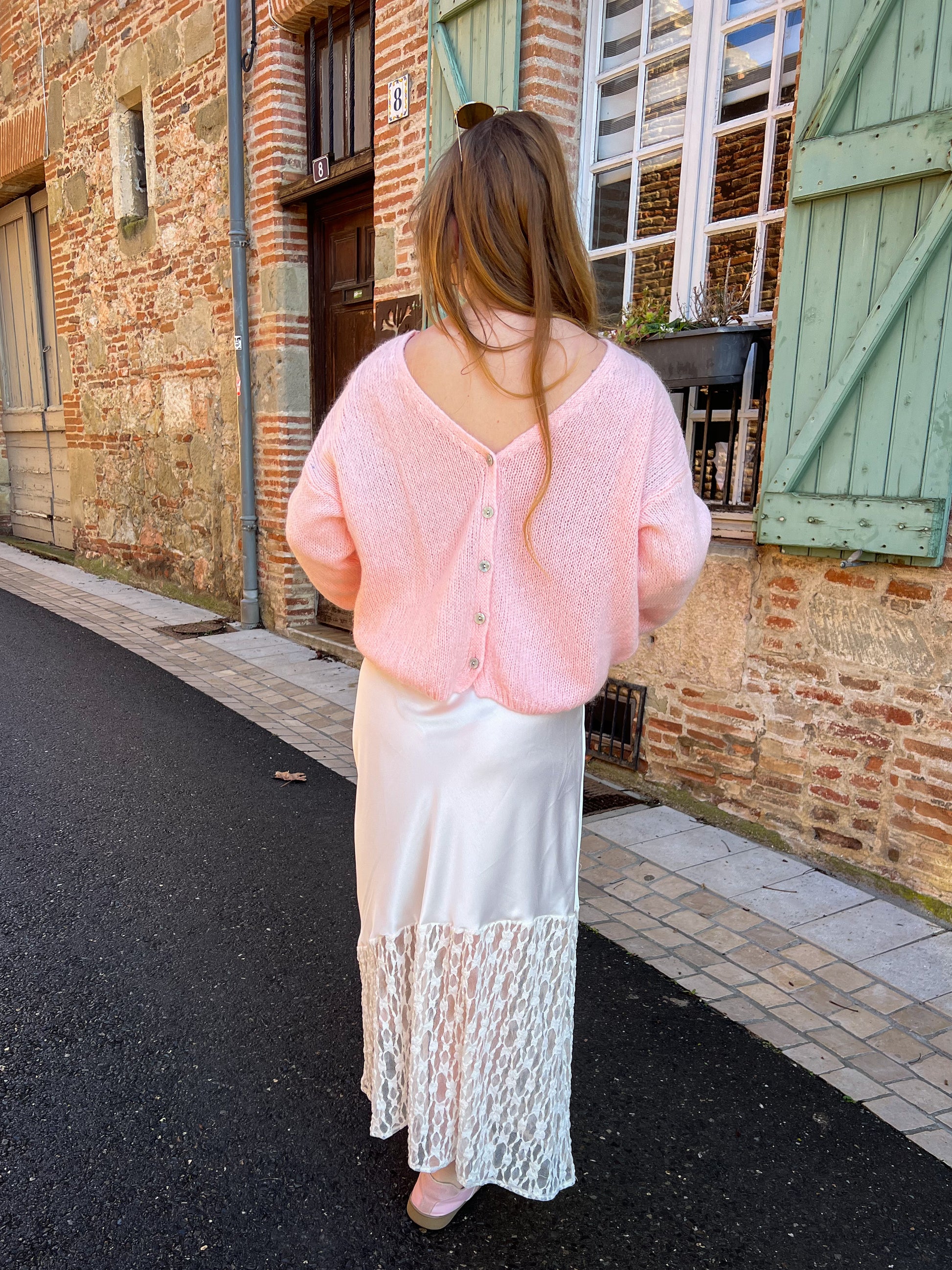 Sa coupe fluide aux épaules tombantes lui confère une allure décontractée et moderne, tandis que les boutons sur le devant apportent une touche classique et intemporelle. Agréable à porter, il enveloppe la silhouette de douceur tout en restant léger.