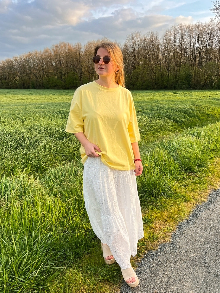 Délicat et plein de charme, ce t-shirt apporte une touche romantique à un basique du quotidien. Son détail en forme de cœur au dos, sublimé par de la dentelle, attire subtilement le regard et fait toute son originalité. Sa coupe droite assure un tombé naturel et confortable, tandis que son col rond et ses manches aux coudes offrent une allure décontractée et facile à porter.